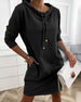 SPECIFICATIONS Style: Casual,Elegant Material: Cotton Blends Dress Type: Hoodie Dress Length: Knee Length Pattern Type: Solid Color Sleeve Type: Regular sleeve Sleeve Length: 3/4 Sleeve Details: Pocket,Drawstring Fit Type: Regular Season: Spring,Summer,Fall Occasion: Daily,Vacation Package Includes: 1 x Dress SIZE TABLE Size Bust Length ...