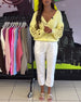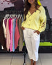 SPECIFICATIONS Top Type: Tops Style: Casual Material: Cotton Blends Occasion: Daily Neckline: V neck_V Pattern Type: Solid Color Sleeve Type: Regular sleeve Sleeve Length: Long Sleeve Fit Type: Regular Season: Spring,Summer,Fall Details: Buttons Package Includes: 1 x Top SIZE TABLE Size Bust Length CM INCH CM INCH S 97 38.19 65 ...