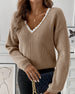 SPECIFICATIONS Category: Pullovers Style: Casual Material: Acrylic,Spandex,Polyester Neckline: V neck_V Pattern Type: Solid color Sleeve Type: Regular sleeve Sleeve Length: Long Sleeve Details: Bowknot Fit Type: Regular Occasion: Daily Season: Spring,Fall Package Includes: 1 x Pullover SIZE TABLE Size Bust Length CM INCH CM INCH S...