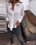 SPECIFICATIONS Top Type: Shirt Style: Casual Material: Cotton Blends Occasion: Daily Neckline: Lapel Pattern Type: Solid Color Sleeve Type: Regular sleeve Sleeve Length: Long Sleeve Fit Type: Regular Season: Spring,Summer,Fall Details: Buckle,Hollow Out Package Includes: 1 x Shirt SIZE TABLE Size Bust Length CM INCH CM INCH S 97...