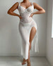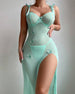 SPECIFICATIONS Style: Sexy Material: Cotton Blends Dress Type: Bodycon Dress Length: Maxi Neckline: V neck_V Pattern Type: Solid Color Sleeve Length: Sleeveless Details: High Opening,Bowknot Fit Type: Skinny Season: Spring,Summer Occasion: Daily Package Includes: 1 x Panties,1 x Dress SIZE TABLE Size Bust Length CM INCH CM INCH ...