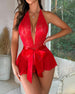 SPECIFICATIONS Style: Sexy Material: Cotton Blends Neckline: Halter Pattern Type: Solid Color Sleeve Length: Sleeveless Details: Backless,See-through,Pearl,Lace Fit Type: Regular Season: Spring,Summer,Fall,Winter Occasion: Daily Package Includes: 1 x Lingerie SIZE TABLE Size Length Under bust Waist CM INCH CM INCH CM INCH One Si...