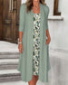 SPECIFICATIONS Style: Casual Material: Cotton Blends Dress Type: Shift dress Dress Length: Midi Pattern Type: Print Sleeve Type: Regular sleeve Sleeve Length: 3/4 Sleeve Details: Pocket,Irregular,Fake two pieces Fit Type: Regular Season: Spring,Summer,Fall Occasion: Daily Package Includes: 1 x Dress SIZE TABLE Size Bust Length CM I...
