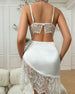 SPECIFICATIONS Style: Sexy Material: Lace,Satin Occasion: Daily Neckline: Spaghetti Straps Pattern Type: Solid Color Sleeve Length: Sleeveless Fit Type: Regular Season: Spring,Summer,Fall,Winter Details: Hollow Out,Lace Package Includes: 1 × Underwear SIZE TABLE Size Bust Waistline CM INCH CM INCH S 76-100 29.92-39.37 66-92 2...