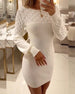 SPECIFICATIONS Style: Elegant Material: Cotton Blends Dress Type: A-Line Dress Length: Knee Length Neckline: Cold Shoulder Pattern Type: Solid Color Sleeve Type: Regular sleeve Sleeve Length: Long Sleeve Details: Patchwork,Hot Drilling Fit Type: Regular Season: Fall,Winter Occasion: Daily,Party Package Includes: 1 x Dress SIZE TABLE S...