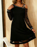 Hot-Fix Crystals Asymmetric Neckline Off-Shoulder Long Sleeve Dress