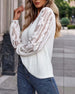Round Neck Lace Patchwork Long-Sleeved T-Shirt