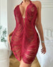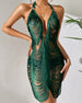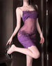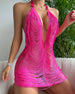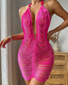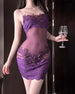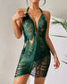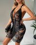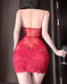Floral Lace Halter Babydoll Lingerie Dress With Thong