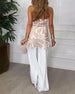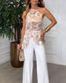SPECIFICATIONS Top Type: Tops Style: Casual Material: Cotton Blends Occasion: Daily Neckline: Halter Pattern Type: Print Sleeve Length: Sleeveless Fit Type: Regular Season: Spring,Summer Details: Backless,Lace Up,Ruffle Package Includes: 1 x Top SIZE TABLE Size Bust Length CM INCH CM INCH S 95 37.40ย 65 25.59ย M 100 39.37ย 66.5 26.1...