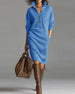 SPECIFICATIONS Style: Casual Material: Cotton Blends Dress Type: Shift dress Dress Length: Midi Neckline: Draped Collar Pattern Type: Solid Color Sleeve Type: Regular sleeve Sleeve Length: Long Sleeve Details: Pocket Fit Type: Regular Season: Spring,Fall,Winter Occasion: Daily Package Includes: 1 x Dress SIZE TABLE Size Bust Length CM I...