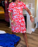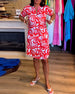 Casual Short-Sleeved Slit Round Neck Printed Dress