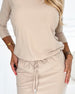 SPECIFICATIONS Style: Casual Top Type: Blouses Category: Sets Material: Cotton Blends Pattern Type: Solid Color Neckline: Round Neck Sleeve Type: Regular sleeve Sleeve Length: 3/4 Sleeve Fit Type: Regular Season: Spring,Fall Occasion: Daily Package Includes: 1 x Blouse, 1 x Skirt SIZE TABLE Size Bust Top length Waist Skirt length CM INC...