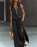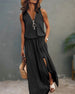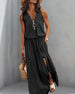SPECIFICATIONS Style: Casual, Vacation Material: Cotton Blends Dress Type: Tank Dress Length: Maxi Neckline: V neck_V Pattern Type: Solid Color Sleeve Length: Sleeveless Details: Slit, Zipper Fit Type: Regular Season: Spring, Summer, Fall Occasion: Daily, Vacation Package Includes: 1 x Dress SIZE TABLE Size Bust Waist Shoulder Length ...