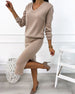 SPECIFICATIONS Style: Casual Top Type: Tops Category: Sets Material: Cotton Blends Pattern Type: Solid Color Neckline: V neck_V Sleeve Type: Regular sleeve Sleeve Length: Long Sleeve Fit Type: Regular Season: Fall,Winter Details: Slit Occasion: Daily Package Includes: 1 x Top, 1 x Skirt SIZE TABLE Size Bust Length Waist CM INCH CM INC...
