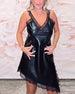 SPECIFICATIONS Style: Elegant Material: PU Leather Dress Type: Cami Dress Length: Above-knee Neckline: Spaghetti Straps Pattern Type: Solid Color Sleeve Length: Sleeveless Details: Slit,Lace,Irregular Fit Type: Regular Season: Fall,Winter Occasion: Daily,Party Package Includes: 1 x Dress SIZE TABLE Size Bust Length CM INCH CM INCH S 9...