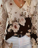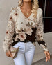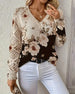 V-neck floral long-sleeved blouse