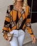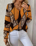 V-neck geometric print casual blouse
