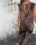 V-Neck Leopard Print Jumpsuit