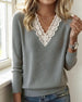 V-Neck Lace Panel Long-Sleeved Top