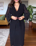 V-neck long sleeve slit dress