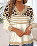 V-Neck Leopard Print Contrast Pullover