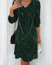V-Neck Leaf Print Long-Sleeved Dress