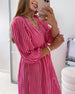 V-neck Lantern Sleeve Striped Dress