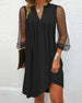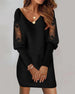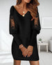 SPECIFICATIONS Style: Elegant Material: Cotton Blends Dress Type: Shift dress Dress Length: Knee Length Neckline: V neck_V Pattern Type: Solid Color Sleeve Type: Lantern Sleeve Sleeve Length: Long Sleeve Details: Patchwork, Hollow Out Fit Type: Regular Season: Spring, Fall, Winter Occasion: Daily Package Includes: 1 x Dress SIZE TABLE ...