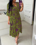 V-neck waist-cinching printed dress