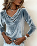 Velvet Solid Color Long-Sleeved Top