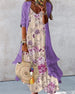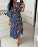 Vacation print V-neck split sleeve dress