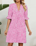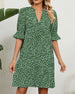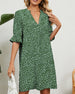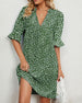 SPECIFICATIONS Style: Elegant Material: Cotton Blends Dress Length: Knee Length Neckline: V neck_V Pattern Type: Floral Sleeve Type: Ruffle Sleeve Sleeve Length: Half Sleeve Fit Type: Regular Season: Summer, Fall Occasion: Vacation Package Includes: 1 x Dress SIZE TABLE Size Bust Length S 95 103 M 100 104 L 106 105 XL 112 106 2...