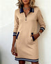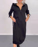 SPECIFICATIONS Style: Casual Material: Cotton Blends Dress Type: Shift dress Dress Length: Knee Length Neckline: Lapel Pattern Type: Solid Color Sleeve Type: Regular sleeve Sleeve Length: Long Sleeve Details: Pocket,Zipper Fit Type: Regular Season: Fall,Winter Occasion: Daily Package Includes: 1 x Dress SIZE TABLE Size Bust Length ...