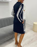 Zippered long sleeve pocket color block dress