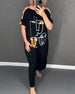 SPECIFICATIONS Style: Casual Top Type: Blouses Material: Cotton Blends Pattern Type: Print Neckline: Round Neck Sleeve Type: Regular sleeve Sleeve Length: Half Sleeve Pants Type: Conventional Pants Length: Long Waist Type: Mid Waist Fit Type: Regular Season: Spring, Summer, Fall Details: Patchwork, Buttons Occasion: Daily Package Includes: 1 ...
