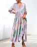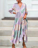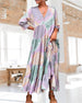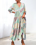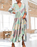 SPECIFICATIONS Style: Casual Material: Cotton Blends Dress Type: A-Line Dress Length: Maxi Neckline: V neck_V Pattern Type: Color Block Sleeve Type: Regular sleeve Sleeve Length: 3/4 Sleeve Details: Shirred Fit Type: Loose Season: Spring, Summer, Fall Occasion: Daily Package Includes: 1 x Dress SIZE TABLE Size Bust Length CM ...