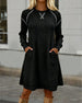 SPECIFICATIONS Style: Casual Material: Cotton Blends Dress Type: Shift dress Dress Length: Knee Length Neckline: Round Neck Pattern Type: Solid Color Sleeve Type: Raglan sleeve Sleeve Length: Long Sleeve Details: Pocket Fit Type: Regular Season: Spring,Fall,Winter Occasion: Daily Package Includes: 1 x Dress SIZE TABLE Size Bust L...