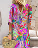 Colorful floral print V-neck three-quarter sleeve casual shirt