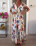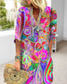SPECIFICATIONS Style: Casual, Vacation Material: Cotton Blends Dress Type: Shirt Dress Length: Maxi Neckline: V neck_V Pattern Type: Print Sleeve Type: Slit Sleeves Sleeve Length: Nine Points Sleeve Details: Patchwork, Buttons Fit Type: Regular Season: Spring, Summer Occasion: Daily, Vacation Package Includes: 1 x Dress SIZE TABLE Size Bu...