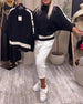 Colorblock Patchwork Fashionable Lapel Sweatshirt