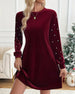 SPECIFICATIONS Style: Casual Material: Velvet Dress Type: A-Line Dress Length: Above-knee Neckline: Round Neck Pattern Type: Solid Color Sleeve Type: Regular sleeve Sleeve Length: Long Sleeve Details: Pearl Fit Type: Regular Season: Fall,Winter Occasion: Daily,Party Package Includes: 1 x Dress SIZE TABLE Size Bust Length CM INCH CM INCH...