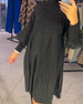 SPECIFICATIONS Style: Elegant Material: Cotton Blends Dress Type: A-Line Dress Length: Knee Length Neckline: V neck_V Pattern Type: Solid Color Sleeve Type: Flare Sleeve Sleeve Length: 3/4 Sleeve Details: Patchwork, Shirred Fit Type: Regular Season: Spring, Summer, Fall Occasion: Daily Package Includes: 1 x Dress SIZE TABLE Size...