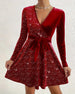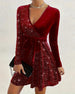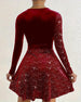 SPECIFICATIONS Style: Party Material: Velvet Dress Type: A-Line Dress Length: Above-knee Neckline: V neck_V Pattern Type: Solid Color Sleeve Type: Regular sleeve Sleeve Length: Long Sleeve Details: Shirred,Knot,Hot Drilling Fit Type: Regular Season: Fall,Winter Occasion: Party Package Includes: 1 x Dress SIZE TABLE Size Bust Length CM I...