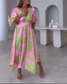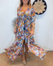 SPECIFICATIONS Style: Vacation Material: Spandex,Chiffon,Polyester Dress Type: A-Line Dress Length: Maxi Neckline: V neck_V Pattern Type: Print Sleeve Type: Lantern Sleeve Sleeve Length: Long Sleeve Details: Slit Fit Type: Regular Season: Spring,Summer Occasion: Vacation Package Includes: 1 x Dress SIZE TABLE Size Bust Len...