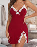 SPECIFICATIONS Style: Sexy Material: Cotton Blends Neckline: Spaghetti Straps Pattern Type: Color Block Sleeve Length: Sleeveless Details: Slit,Bowknot,Lace Fit Type: Regular Season: Spring,Summer,Fall,Winter Package Includes: 1 x Lingerie SIZE TABLE Size Bust Waist Length CM INCH CM INCH CM INCH S 76 29.92 78 30.71 65 25.59...