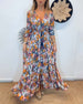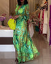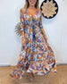 SPECIFICATIONS Style: Elegant, Party Material: Cotton Blends Dress Type: A-Line Dress Length: Maxi Neckline: V neck_V Pattern Type: Print Sleeve Type: Puff Sleeve Sleeve Length: Half Sleeve Details: Patchwork, Shirred Fit Type: Regular Season: Spring, Summer, Fall Occasion: Daily, Party Package Includes: 1 x Dress SIZE TABLE S...