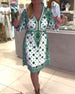 Elegant Three-Quarter Sleeve Printed Waist Dress