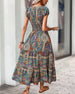 SPECIFICATIONS Style: Elegant Material: Cotton Blends Dress Type: A-Line Dress Length: Midi Neckline: V neck_V Pattern Type: Print Sleeve Type: Regular sleeve Sleeve Length: Short Sleeve Fit Type: Regular Season: Spring, Summer, Fall Occasion: Daily Package Includes: 1 x Dress SIZE TABLE Size Bust Length Sleeve length cm in...