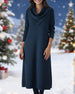 SPECIFICATIONS Category: Sweater Dresses Style: Casual Material: Acrylic,Spandex,Polyester Neckline: Cowl Neck Pattern Type: Solid color Sleeve Type: Dropped shoulder Dress Type: Straight Dress Length: Midi Sleeve Length: Long Sleeve Fit Type: Loose Occasion: Daily Season: Spring,Fall,Winter Package Includes: 1 x Sweater Dress SIZE TABLE ...