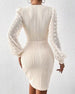 SPECIFICATIONS Style: Elegant,Party Material:50% PU 50% Polyester Dress Type: A-Line Dress Length: Above-knee Neckline: V neck_V Pattern Type: Solid Color Sleeve Type: Regular sleeve Sleeve Length: Long Sleeve Details: Lace Up Fit Type: Regular Season: Spring,Fall,Winter Occasion: Daily,Party Package Includes: 1 x Dress SIZE TABLE ...